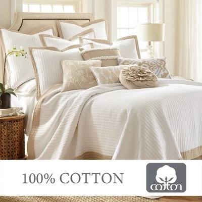 The Adobe Border Reversible Quilt Set by Levtex Home is inspired by ancient stitching techniques. This cream stitched design will immediately transform your bedroom. Made with the softest lightweight cotton, this reversible quilt features a durable luxurious quilt stitched pattern in a rich cream color, complemented with a thick natural tan border, reversing to the same design on the other. The Quilt Set is machine washable and includes the quilt and matching pillow shams. Enjoy this for years to come!
