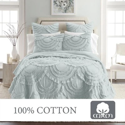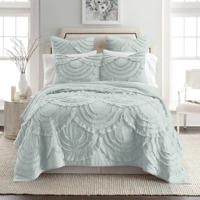 - LEVTEX ALLIE SPA QUILT BED SET: A simple light blue fringe bedding set consisting of a quilt and matching pillow sham. Used by itself, as a layering piece or as a bedspread, this bedding set is extremely versatile.