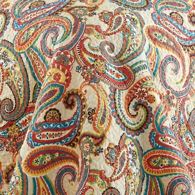 - COORDINATE YOUR ROOM DECOR: Create a wonderful bedroom space with our coordinated reversible matching bed set. The orange, teal, red, green, yellow and cream design brings bright and fun swirls of paisley into your home and will match a variety of different looks and bedroom decor. You can also freshen your room with other items from the Levtex Home collection.