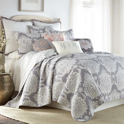 - COORDINATE YOUR ROOM DECOR: Create a wonderful bedroom space with our coordinated reversible matching bed set. The luscious damask design brings bold sophisticated accents into your home and will match a variety of different looks and bedroom decor. You can also freshen your room with coordinating decorative pillows, euro shams and throws from the Levtex Home collection.