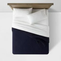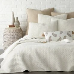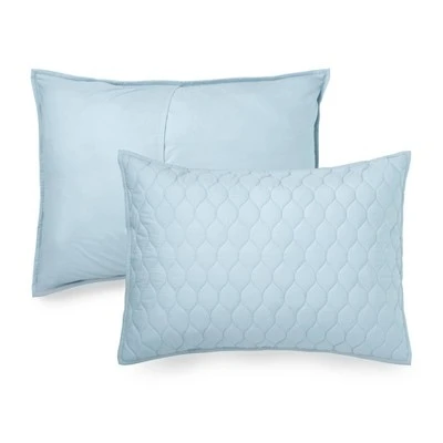 Fashion meets function with this must have cotton-rich chambray textured Darcy quilt set by Welhome. Quality 60% Cotton paired with 40% polyester fabric that is safe to withstand up to 4oz bleach if desired or frequent washing. Year-round fabric is breathable for layering and features a cool and crisp percale weave for softness and durability in a 300 thread-count sateen. Quilted in an interlocking pattern for soft-on-skin texture with clean bound edges for a polished look. Available in ten fashionable colors for versatility.