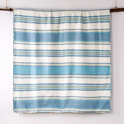 - COORDINATE YOUR ROOM DECOR: Create a wonderful bedroom space with our coordinated reversible matching bed set. The tan, cream and blue striped design brings bright and breezy coastal accents into your home and will match a variety of different looks and bedroom decor. You can also freshen your room with matching drapes, throw blanket and decorative pillows from the Levtex Home collection.