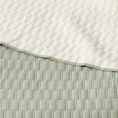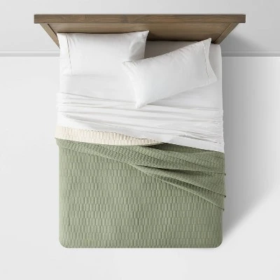 Create a soothing ambiance in your bedroom with the Botanical Dye Quilt from Threshold™. Crafted from 100% cotton with soft filling, this decorative quilt brings an extra layer of coziness to the top of your bed, ensuring you snooze the night away in complete comfort. Featuring a reversible brick-like stitched design in solid hues, this quilt is sure to fill your bedroom with elegant style. The front fabric is colored with dye extracted from plants and flowers, while the back fabric is unbleached and undyed. Pair it with a contrasting comforter and toss in matching or printed pillows to add some character to your sleeping nook.