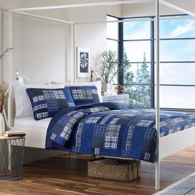 Enjoy the convenience of two different looks in one with this reversible three-piece quilt set by Eddie Bauer. The plaid pattern on this cotton quilt set offers a classic vintage look while matching pillow cases allow for a matching effect. The set is great for use on the bed or for snuggling on the sofa. The set is machine-washable for easy care and maintenance. Twin quilt set includes: one twin quilt (88″l x 68″w) and one standard sham (21″l x 27″w), full/queen quilt set includes: one full/queen (90″l x 90″w) and two standard shams (21″l x 27″w), king quilt set includes: one king quilt (96″l x 104″w) and two king shams (21″l x 37″w)