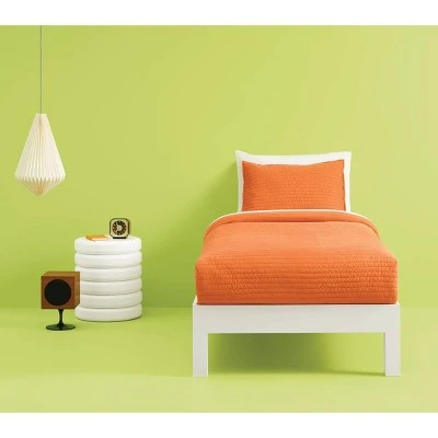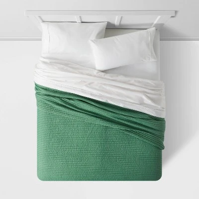 Bring modern style to your bed with this Garment Washed Microfiber Quilt from Room Essentials™. This microfiber bedding quilt makes a great choice for year-round comfort. It features a stitched striped design for contemporary texture, and a solid color to match any aesthetic. The lightly quilted construction offers a soft and cozy touch to your sleep space. Use it as a quilt or as a coverlet on the top of your bed, and for easy upkeep, simply throw in the washing machine.