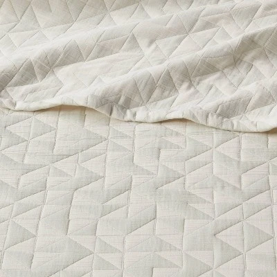 Provide your bedroom a stunning makeover with the Geometric Matelasse Quilt from Threshold™. Crafted from 100% cotton with generous filling, this decorative quilt feels soft to the touch and adds an extra layer of warmth to your bed. Adorned with a dual-hue geometric matelasse design, it instantly highlights your bedroom decor. Toss it over the comforter or duvet cover of your choice and coordinate it with matching shams or pillows to create an inviting resting space.