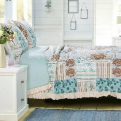 - Create a coastal mood in your room with the Key West fringed quilt set.
