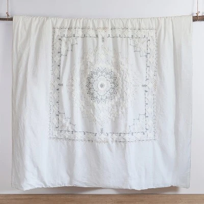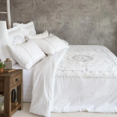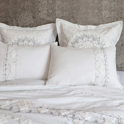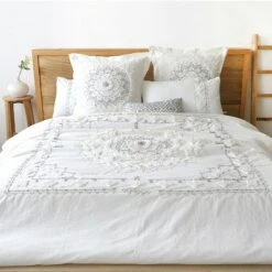 - THE HARLESON MEDALLION DESIGN: One of our most popular sets, Harleson Medallion is contemporary bohemian. The front is a tufted grey and cream bordered mandala pattern on white and the reverse is solid white 100% cotton. The comforter is filled with soft, hypoallergenic 100% polyester.