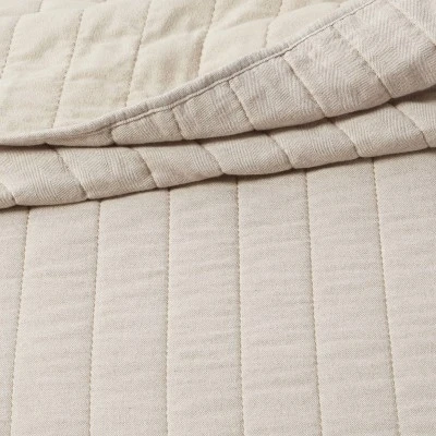 Create an understated, inviting environment in your restful retreat with this Channel Flannel Quilt from Threshold™. This quilt is made of 100% cotton with plenty of soft filling to wrap you in sumptuous comfort, and it showcases a channel quilted design with a versatile solid finish for a tastefully textured look. This cotton flannel quilt is machine-washable for easy cleaning so you can keep your space looking its absolute best. From offering an additional layer of texture to your sleep quarters to keeping you warm and comfy on cool nights, this channel-tufted flannel quilt is a must-have addition to your space.