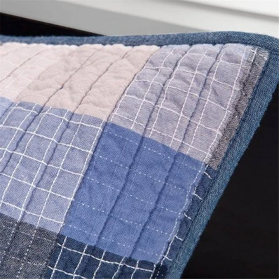 The Maddox Coverlet Set creates a casual yet sophisticated look with this patchwork quilt. Shades of yard dyed blue and khaki work together in small squares adding value and dimension to this collection. Made from 100% cotton, this set includes a coverlet and one sham. It is machine washable for easy care.