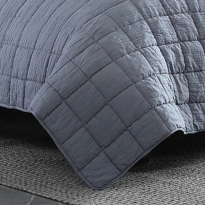 Introducing the kenneth Cole Carmine quilt, a bedding essential you didn’t know you needed, in smoke grey. It’s crafted from 100% cotton using a special technique, giving the fabric a ‘crinkle’ effect. Pre-washed for added softness. Filled with 100% polyester for extra warmth and durability. The carmine features a 4″ oversized box stitch to keep fill in place, wash after wash. Shams are included to round out the ensemble (one sham included with twin size.). Packaged thoughtfully and sustainability without use of plastic. Machine washable for easy care. Twin Set: Quilt- 88”L X 68”W, Standard Sham 21″L X 27”W; Full/Queen Set: Quilt- 90”L X 90”W, Standard Shams- 21”L X 27”W; King Set: Quilt-96”L X 104”W, King Shams- 21”L X 37”W