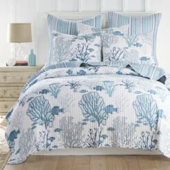 - LEVTEX LACEY SEA QUILT BED SET: A coastal bedding set consisting of a quilt and matching pillow shams. Used by itself, as a layering piece or as a bedspread, this bedding set is extremely versatile.