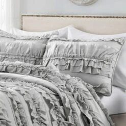- This Breezy Floral Quilt Set features a soft palette of rose pink and dove gray with pale yellow accents on a creamy white background. The polka dot reverse print adds an additional feminine touch in pale pink and white, and also accents the edges of the quilt; This all-cotton quilt set is prewashed for extra softness and comfort