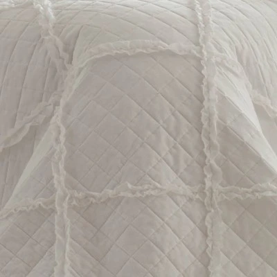 Whether you coordinate with white sheets for a pristine look or style with printed sheets for a colorful touch, this Laura Ashley Maisey Quilt Set from Fieldcrest® will help create an elegant, restful retreat for you. Crafted from 100% cotton for an ultra-soft texture, this quilt set is brimming with charm. Featuring lovely ruffle detailing on a diamond-quilted base, this white bedding set blends effortlessly with any color palette. Lay this Maisey quilt set on your bed to add a soft, elegant touch to your space.