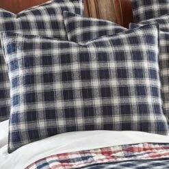 - COORDINATE YOUR ROOM DECOR: Create a wonderful bedroom space with our coordinated reversible quilt. The navy and cream check design brings farmhouse, traditional accents into your home and will match a variety of different looks and bedroom decor. You can also freshen your room with other items from the Lodge collection.
