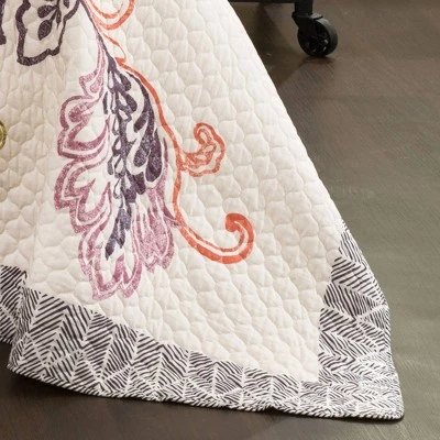 Lush Décor’s Aster Quilt 3pc Set features a delicate floral engineered pattern on 100% cotton. This soft cotton quilt set will add life to any bedroom with its bright pastel colors and large blooms. The Aster Quilt 3pc Set is reversible, giving you the opportunity to choose your style each day. Opposite the bright and lively front design is a calmer and more subdued pattern. This quilt is lightweight and perfect for the spring, summer and early fall, or for anyone who lives in a region with warm weather year-round. If you prefer a heavier weight, the Aster pattern is available in a 5pc comforter set. Our Aster Quilt 3pc Set is available in both Full/Queen and King sizes and includes a beautiful soft cotton quilt and two matching shams to complete the look. It would look fantastic in your master bedroom or your guest bedroom. When it comes to decor style, this quilt set is suited well for farmhouse and country style design themes. Part of the Aster collection.