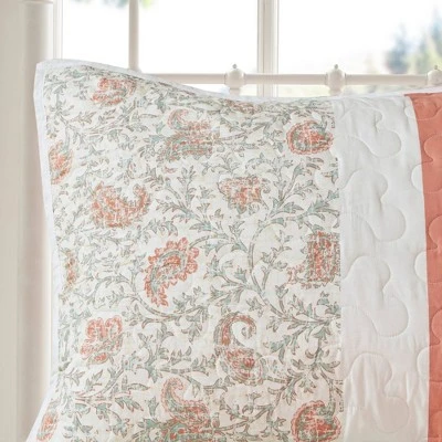 The Stella 6 Piece Cotton Percale Reversible Coverlet Set offers a stylish shabby chic update to your bedroom decor. A paisley design in soft hues is printed on the face of the cotton coverlet with pintucked fabric separated by lace taping embellishments that flips to a solid reverse. Matching shams mirror the design of the coverlet, while three decorative pillows with pleating, embroidery, and ruching details complete this farmhouse coverlet set. Machine washable for easy care, this reversible cotton coverlet set brings a sophisticated elegance to your bedroom decor. Coordinating shower curtain is available and sold separately.