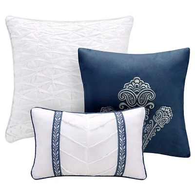 The Audra Reversible Coverlet Set brings an updated feel to your current decor. Its backdrop allows the white medallions to pop off of the top of bed. This coverlet and shams are fully reversible offering the flexibility to update your current decor or use this coverlet as a layering piece with your current bedding. Three decorative pillows use fabric manipulation and embroidery for the perfect finishing touches to this collection.