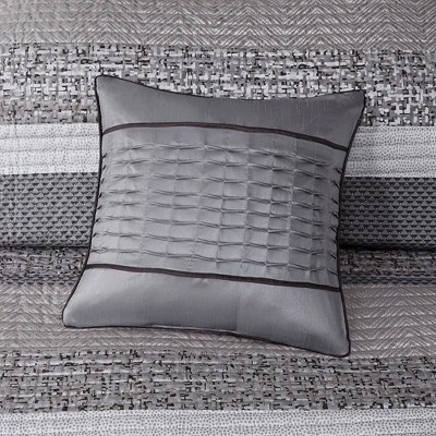 Add a fresh look to your bedroom with the 6pc Harmony Polyester Jacquard Quilted Coverlet Set. This woven jacquard stripe features several different small motifs within the stripe for added dimension to this collection. Three decorative pillows use fabric manipulation and embroidery techniques to tie this whole look together. Machine washable for easy care, this quilted jacquard coverlet set brings an extravagant and stylish touch to your bedroom.