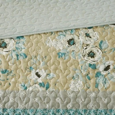 For a clean, cottage feel in your bedroom, Loraine 6pc Reversible Coverlet Set provides a mix of shabby chic with modern prints. Stripes feature florals, medallions, and geometric designs in beautiful colors. Two shams pull the floral design and three decorative pillows use coordinating colors to complete this look. Machine washable for easy care, this cotton sateen printed coverlet set offers a cozy and quaint shabby chic style to update your bedroom décor.