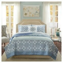 Create a refreshing look in your bedroom with the Sasha Complete Reversible Coverlet and Cotton Sheet Set. The coverlet features several globally inspired prints in a striped motif with a solid reverse that complements the top of the bed. Coordinating shams (1 in Twin Sizes) pair perfectly with the coverlet while a decorative pillow with embroidered details adds dimension to the top of the bed. Also included is a 100% cotton sheet set that provides an alluring touch with its printed design. Bringing the best in health and wellness, this bedding set also features an anti-microbial treatment that provides built-in freshness protection, reducing the growth of odor causing bacteria and keeps fabric lasting longer. This bedding set is OEKO-TEX certified, meaning it does not contain any harmful substances or chemicals, ensuring quality comfort and wellness.