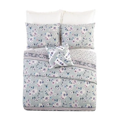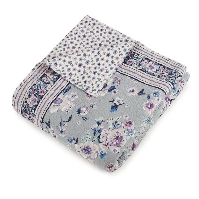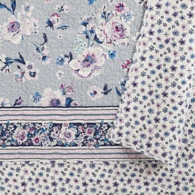 Vera Bradley puts a new spin on a classic look. This floral print in dusty pink, shades of lavender and unexpected blue tones on a gray ground is perfect for a soft, yet sophisticated look for your bedroom. A lush floral design paired with a classic stripe create a beautiful border. The reverse print is a petite floral ditsy in the same neutral tones on a white ground. Composed of 100% cotton.