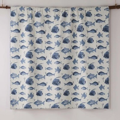 The Pataya Reversible Quilt Set by Levtex Home is inspired by the Greek islands. This fresh coastal design will immediately transform your bedroom. Made with the softest lightweight cotton, this reversible quilt features a painterly fish in indigo on a cream ground, reversing to a batick-inspired stripe in indigo on cream on the other. The Quilt Set is machine washable and includes the quilt and standard pillow shams. Enjoy this for years to come!