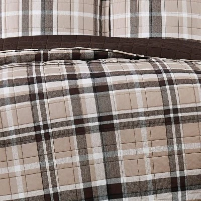 A classic plaid pattern is the centerpiece for this collection. The printed pattern features a textured style to provide depth to the pattern. The pattern is dominated by earth tones with browns, khaki and ecru shades. Items feature Truly Soft face and back material for softness and performance you can count on. Each bedding set inc;udes pillow sham(s). The fabric is 100% brushed microfiber with our special Truly Soft treatment. Quilts feature a cotton blended filling. This item is machine washable, but please be sure to use appropriate sized machinery to avoid any excess wear on the items.