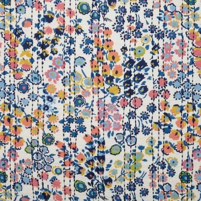 A retro inspired yet totally fresh floral blooms print on 100% cotton. The Vera Bradley Petite Floral Quilt has kantha inspired quilting that adds a handcrafted look. Matching pillow shams are sold separately. Machine wash in cold water, gentle cycle. Do not use bleach. Tumble dry low. Use cool iron as needed.