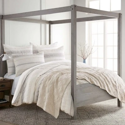 - THE PICKFORD DESIGN: One of our most popular sets, Pickford is hip and contemporary. The front is a global woven stripe in grey, taupe and off-white and the reverse is solid cream in 100% cotton. The comforter is filled with soft, hypoallergenic 100% polyester.