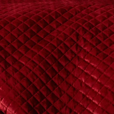 The Red Velvet Reversible Quilt Set by Levtex Home is inspired by traditional holiday pageantry. Offered in red, this design will immediately transform your bedroom. Made with the softest pre-washed poly velvet, this reversible quilt features a soft red velvet quilted in a class diamond pattern, reversing to a red solid microfiber back. The Quilt Set is machine washable and includes the quilt and pillow shams. Bring the holidays home!