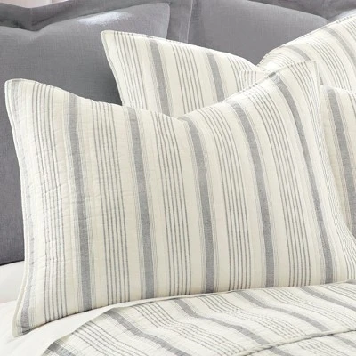 The Rochelle Quilt Set by Levtex Home is inspired by classic French menswear stripes. This stripe quilt design will immediately transform your bedroom. Made with the softest lightweight cotton, this reversible quilt features a navy and cream variegated stripe, reversing to itself.