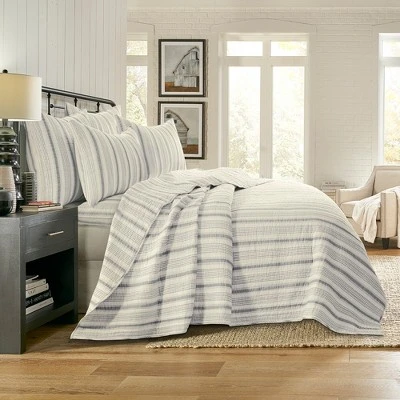 - COORDINATE YOUR ROOM DECOR: Create a wonderful bedroom space with our coordinated matching bed set. The stripe quilt design brings classic, sophisticated accents into your home and will match a variety of different looks and bedroom decor. You can also freshen your room with coordinating decorative pillows, throw and euro shams from the Levtex Home collection.