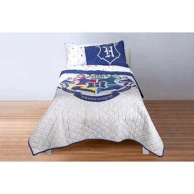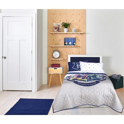 Your Hogwarts letter has arrived! Bedtime becomes a magical adventure for wizards of all ages with our exclusive Harry Potter Quilt. The quilt features the iconic colorful Hogwarts Crest, including the school motto “Draco Dormiens Nunquam Titillandus”, on a classic gray background. Full/Queen quilt measures 88″ x 88″. Twin quilt measures 68″ x 88″. Reverses to solid blue. Pairs perfectly with our Harry Potter Quilt Sham. OEKO TEX certified – tested for harmful chemicals. Machine washable for easy care. Imported.