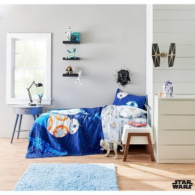 Bring galactic wonder into your little one’s room with our exclusive Star Wars Droids quilt. R2-D2 and BB-8 are perfectly placed on our beautiful cotton quilt. The Saturday Park color palette is consistent across the entire line, making each piece truly mix and match. Matching sham and coordinating sheets sold separately.