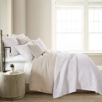 The Sherbourne Stitch Reversible Quilt by Levtex Home is inspired by classic matelasse fabrics. The stitching design will immediately transform your bedroom. This reversible quilt features stitching quilted in an intricate medallion pattern on the front and the reverse. The Quilt is cotton, filled with a cotton rich filler and is machine washable. Enjoy this for years to come!
