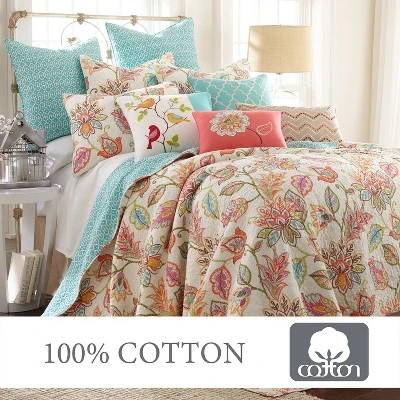 - COORDINATE YOUR ROOM DECOR: Create a wonderful bedroom space with our coordinated reversible matching bed set. The intricate floral design brings bright botanical accents into your home and will match a variety of different looks and bedroom decor. You can also freshen your room with coordinating decorative pillows, euro shams, and throws from the Levtex Home collection.