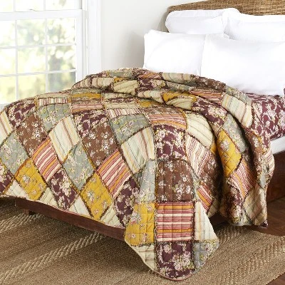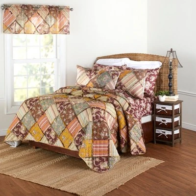 Match any bedroom in your home to the harvest season with this ragged patchwork design quilt top. It is soft, warm, and fluffy for comfortable evenings in the fall. The patch design gives a comfortable spirit to any bedspread. You can throw it in the guest room, the children’s room, or toss it on the bed in the master bedroom. It is machine washable for ease of cleaning and care. You can give it as a gift to family and friends who love to decorate their homes with a harvest room accent. Cotton and polyester with polyfill. Machine care. Twin: 68″W x 86″L – Full/Queen: 86″ sq. – King Quilt, 100″W x 90″L