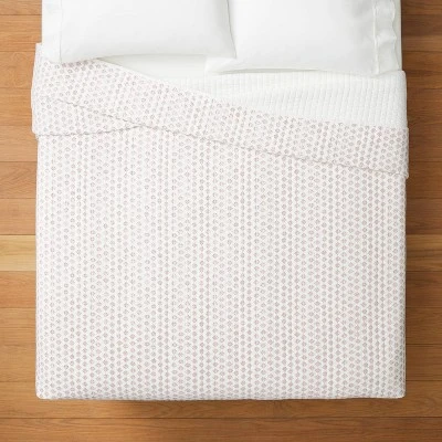 Anchor your bedroom oasis with the Decorative Border Cotton-Slub Wood-Block Print Quilt from Threshold™ designed with Studio McGee. This midweight quilt is decorated with a mauve block print of floral medallions over a white quilted background and features a matching border on the entire boundary for a soft pop of color and texture in your space. It boasts a 100% cotton fabric construction with 100% cotton filling to keep you comfy and cozy through the year. Complete the look of your sleeping nook with matching pillow shams, paired with solid white or other neutral-hue bed sheets.