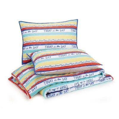 Wake up each day with this cozy quilt designed by Molly Hatch by Maker’s Collective. Featuring an inspirational message reminding us to seize the day. This quilt is styled in vibrant palette that will complement any décor. Made of 100% polyester for easy care. Quilt and shams feature a vibrant red binding for dress maker detail finish.  Geometric double diamond quilting secures quilt and creates a handcrafted feel.