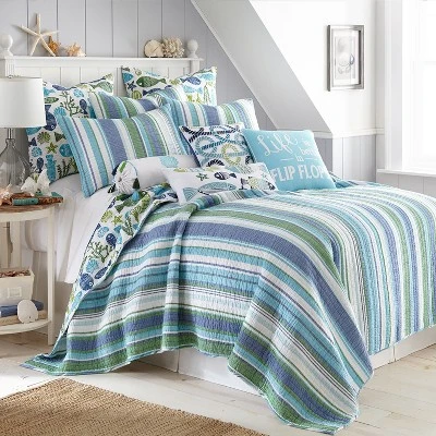 - COORDINATE YOUR ROOM DECOR: Create a wonderful bedroom space with our coordinated reversible matching bed set. The teal, blue, green and cream design brings fun coastal vibes into your home and will match a variety of different looks and bedroom decor. You can also freshen your room with other items from the Levtex Home collection.