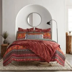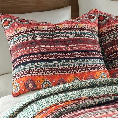 - COORDINATE YOUR ROOM DECOR: Create a wonderful bedroom space with our coordinated reversible matching bed set. The orange, green, red and black design brings a richly detailed rug-like feel into your home and will match a variety of different looks and bedroom decor. You can also freshen your room with other items from the Levtex Home collection.