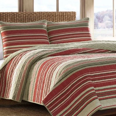 - Traditional Yakima Valley Quilt Set by Eddie Bauer Features A Striped Quilt In Hues Of Warm Reds And Espresso, Reversing To A Chevron Pattern In Khaki
