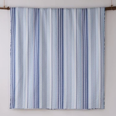 The Zuma Beach Reversible Quilt Set by Levtex Home is inspired by iconic coastal elements and patterns. This subtle stripe design will immediately transform your bedroom. Made with the softest lightweight cotton, this reversible quilt features a a rich, tradiitonal stripe in shades on blue and white, reversing to a coral in shades of blue on a white ground on the other. Enjoy this for years to come!