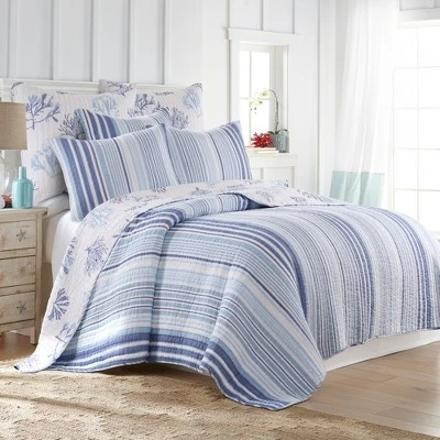 - COORDINATE YOUR ROOM DECOR: Create a wonderful bedroom space with our coordinated reversible matching bed set. The subtle stripe design brings sophisticated coastal accents into your home and will match a variety of different looks and bedroom decor. You can also freshen your room with coordinating decorative pillows and euro shams from the Levtex Home collection.